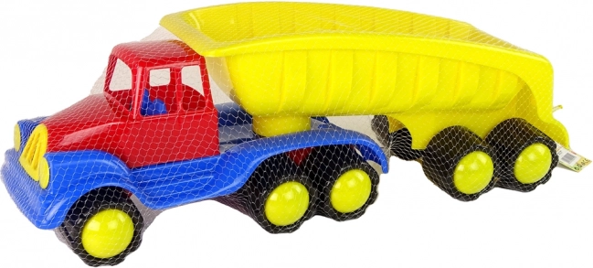 Velik tovornjak z rumeno prikolico je igrača, ki razvija otroško ustvarjalnost in zabavo. Zaradi svoje dolžine in vrtljive prikolice omogoča širok spekter igralnih scenarijev.
