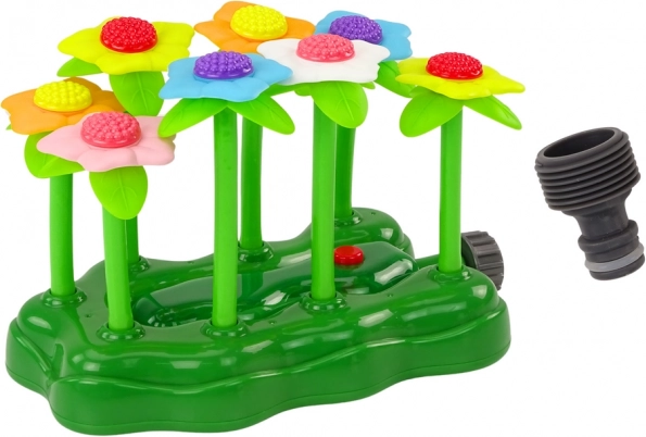 Po priključitvi vrtne cevi in spuščanju vode tlak povzroči, da iz cvetov šprica voda, kar je odličen način, da otroci aktivno preživljajo čas na prostem.