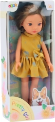 Sladka lutka višine 33 cm je idealna za vsakodnevno zabavo. Ima nežen makeup, oblečena je v rumene obleke z vzorci slonov in belimi čevlji. Eleganten stil las spodbuja otroško kreativnost.