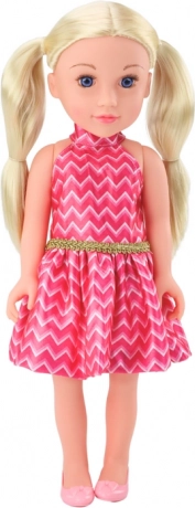 Ta lepa lutka ima dolge, blond lase, spete v čopke, kar ji daje otroški čar. Lase je mehko in lahko stilirati, kar omogoča kreativne frizerske igre. Lutka ima nežen make-up in dolge trepalnice, ki poudarijo njene izrazite poteze obraza. Oblečena je v rožnato obleko z zlatim pasom, popolnoma usklajeno z rožnatimi čevlji.