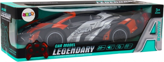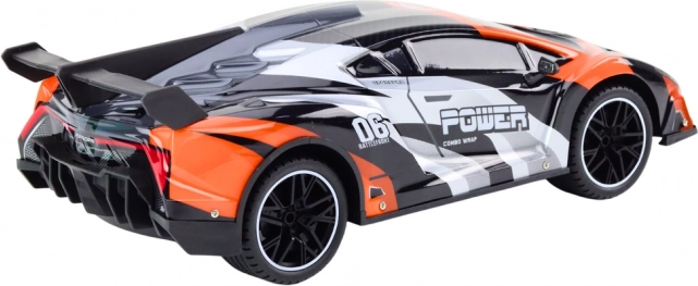 Sivo‑oranžna športna karoserija z dirkaškimi elementi, napisi in zadnjim krilcem daje modelu realističen videz.