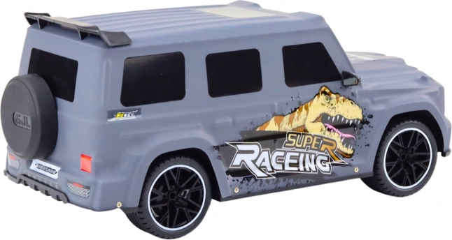 Stilski RC avto v sivi barvi z izvirno dinozavrsko grafiko bo navdušil male in velike ljubitelje hitre vožnje. Prave sprednje luči polepšajo vožnjo tudi v mraku, kakovostna izdelava pa zagotavlja dolgo življenjsko dobo. Odlična izbira kot darilo za otroke od 3 let.