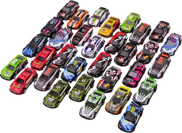 Ta bogata kolekcija vsebuje 32 edinstvenih avtomobilčkov v živahnih barvah. Zahvaljujoč vztrajnostnemu pogonu se avtomobilčki gladko premikajo po katerikoli ravni površini ter vabijo k dirkanju in ustvarjalnim igralnim scenarijem. Set je idealen za domače steze, improvizirane relije in skupinsko igro.