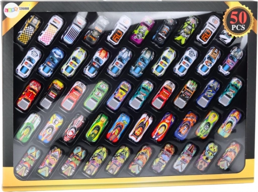 Ta obsežna zbirka kovinskih avtomobilčkov otrokom prinaša pestro paleto oblik in barv. Zahvaljujoč 50 edinstvenim modelom si lahko ustvarijo lastne dirkalne steze, mestne ulice in terenske pustolovščine. Avtomobilčki na pogon se zlahka zaženejo in zagotavljajo dolgotrajno zabavo.