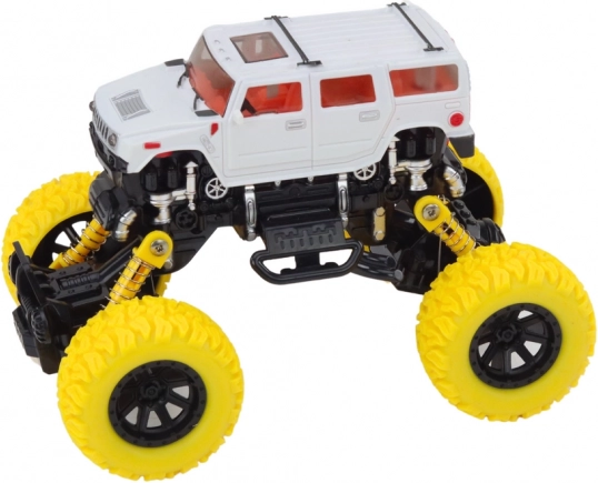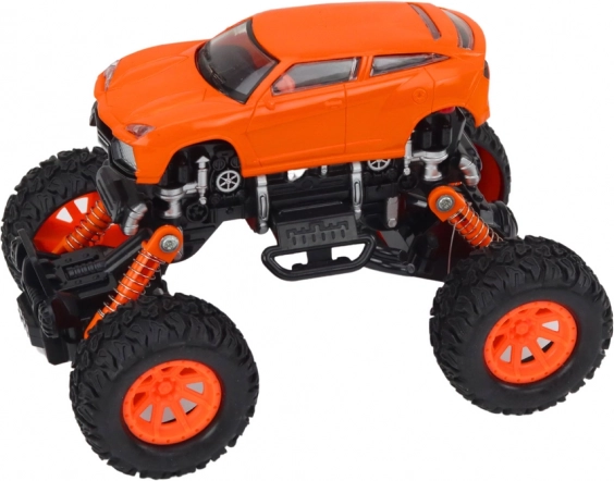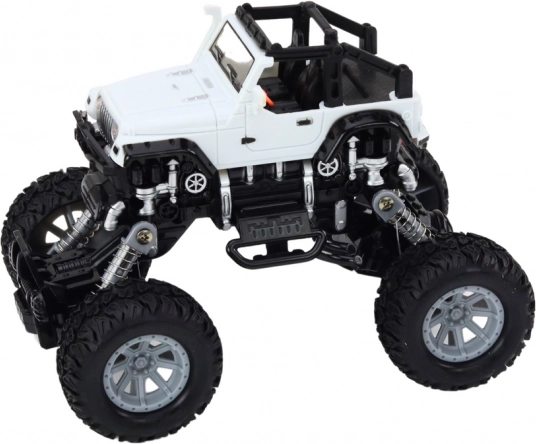Terensko vozilo 4x4 je zasnovano za dinamično igro v zahtevnih razmerah. Visoko, vzmeteno vpetje in velika, profilirana kolesa omogočajo preprosto premagovanje ovir, kamenčkov in neravne podlage. Realistične podrobnosti, kot so odbijači in stranski elementi, dajejo igrački videz pravega off-road vozila.