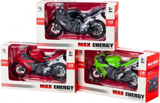 Realističen športni motocikel v merilu 1:12 bo navdušil otroke in zbiratelje. Ponuja podrobno izdelavo, kovinske dele in vrtljiva krmila. Zahvaljujoč stojalu stabilno stoji na polici, izbirate lahko med rdečo, zeleno ali črno različico. Primerno od 3 let, certifikata CE in skladnost z EN71.