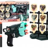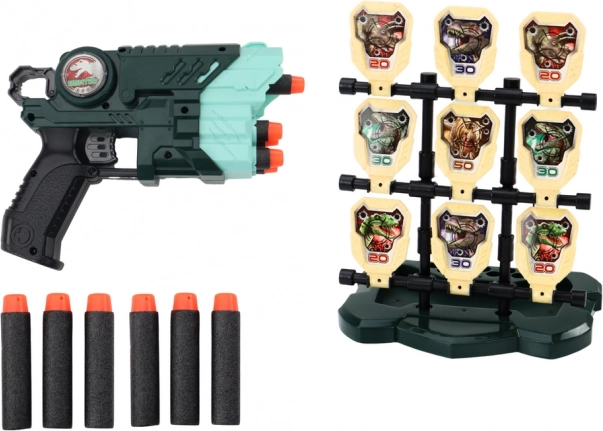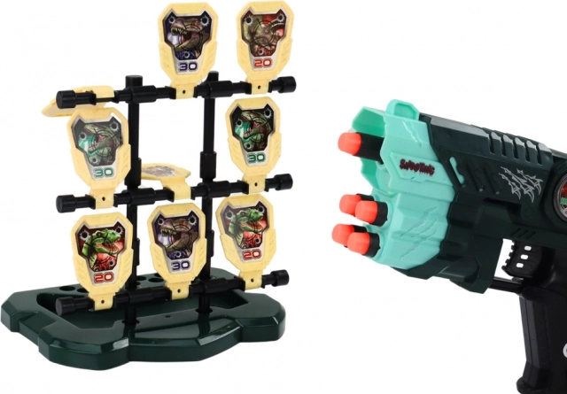 Strelski set z dinozavrskim motivom, zasnovan za otroke, ponuja edinstveno igralno izkušnjo, ki združuje zabavo in razvoj spretnosti. Set vsebuje lahko in ergonomsko pištolo, ki omogoča enostavno upravljanje tudi za manjše roke.