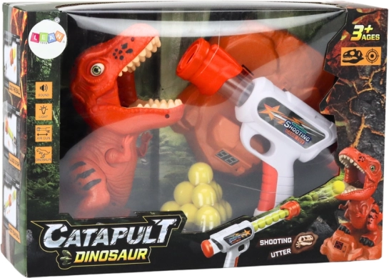 Zabavna igra streljanja dinozavrov je idealna za otroke, ki želijo preživeti ure navdušene zabave. Del kompleta je robusten rjav dinozaver z detajlnimi elementi, ki stoji na podstavku, ki spominja na kamen. Ta dinozaver se premika desno in levo, kar povečuje težavnost igre in zahteva od igralcev spretnost in hitrost.