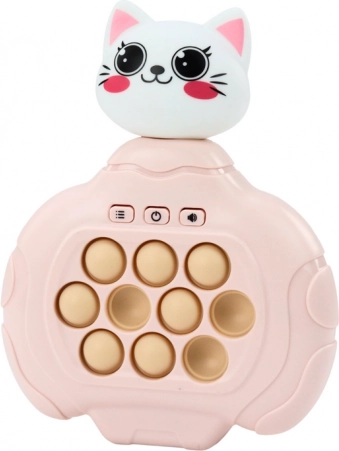 Pop-It igra z motivom mačke v rožnati izvedbi je idealna kombinacija za otroško zabavo in razvoj. Njene pastelne barve in ljubek videz takoj pritegnejo pozornost. Igra vključuje učinke vibracij in zvoka, ki spodbujajo otroke k igranju.