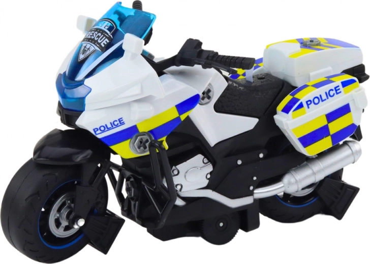 Motocikel je opremljen s svetlobnimi in zvočnimi učinki, ki igri dodajo realizem in privlačnost. Luči lahko simulirajo policijske signale, zvoki pa spominjajo na sirene, zato se lahko otroci vživijo v vlogo policistov in ponazarjajo različne varnostne ter intervencijske scenarije. Ena glavnih lastnosti tega motorja je njegov frikcijski pogon. Zahvaljujoč njemu se motor ob potisku in spustu premika naprej, kar igri doda dinamiko. Otroci lahko opazujejo gibanje vozila, kar povečuje njihovo vključenost in radovednost.