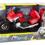 Motocikel je opremljen s svetlobnimi in zvočnimi efekti, ki igri dodajo realizem in privlačnost. Luči lahko simulirajo signalizacijo, zvoki pa spominjajo na sire ne, zato se lahko otroci vživijo v vlogo reševalcev in uprizarjajo različne scenarije, povezane z varnostjo. Ena glavnih prednosti tega motorja je njegov trenjski pogon. Zahvaljujoč njemu se motor po potisku in spustu premika naprej, kar igri doda dinamiko. Otroci lahko spremljajo premikanje vozila, kar povečuje njihovo vključenost in radovednost.