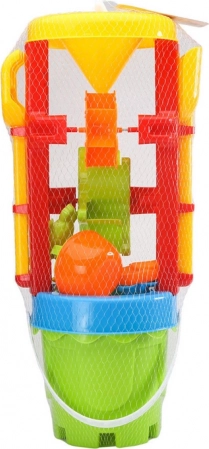 V pakiranju je vse, kar mali graditelji potrebujejo: vedro, lopatka, grabljice, kannica in 4 modelčki. Zaradi čvrste, kakovostne plastične konstrukcije in živih barv je set vzdržljiv, varen in privlačen za otroke.