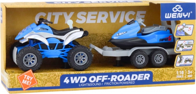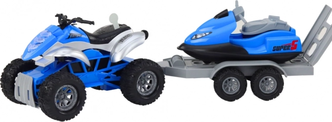 Odkrijte akcijski igračni set s štirikolesnikom, prikolico in vodnim skuterjem za otroke od 3 let. Zahvaljujoč realistični izdelavi, funkcionalni prikolici in trpežnim kolesom prinaša kreativne pustolovščine na kopnem in v vodnih scenarijih. Odlično kot darilo, z poudarkom na varnosti in vzdržljivi izvedbi.