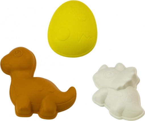 Komplet modelčkov omogoča izdelavo dino oblik in zabavnih detajlov, ki popestrijo vsak peščeni grad ali odtis v pesku.