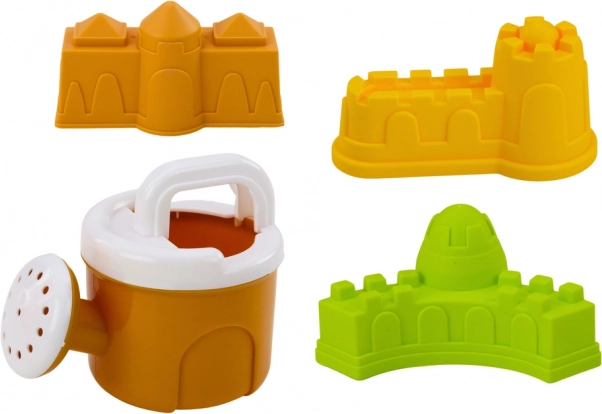 - mlinček s sitom in lijakom, zalivalka, 3× modelček gradu, lopatka, grabljice