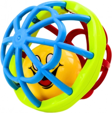 Lahka zasnova in ergonomska oblika olajšujeta prijem in rokovanje. Notranja ropotuljica oddaja nežen zvok, ki spodbuja radovednost in interakcijo, medtem ko raznolike površine in barve podpirajo senzorično stimulacijo in fino motoriko.