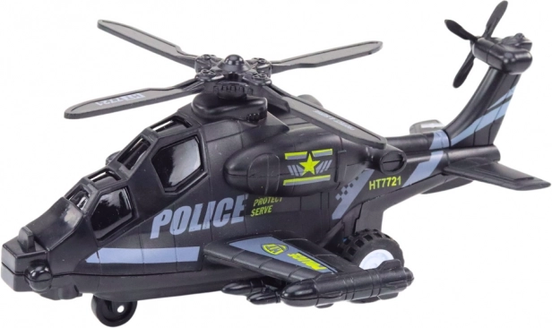 Policijski helikopter je opremljen s frikcijskim pogonom - samo ga potisnite naprej in prevozil bo dolge razdalje, simulirajoč realistične lete in pristanke. Poleg tega utripajoče luči popestrijo igro, dodajajoč realizem vsaki policijski akciji. Vgrajeni zvočni učinki, ki se aktivirajo med igro, naredijo vsako misijo še bolj vznemirljivo. Trdna konstrukcija iz odpornih materialov zagotavlja dolge ure varne igre, in preprost mehanizem frikcijskega pogona je idealen za male roke.