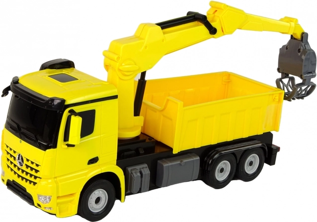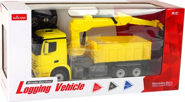 Realističen RC tovornjak MERCEDES-BENZ Arocs znamke Rastar v živahni rumeni barvi prinaša otrokom ure zabave. Ponuja vrtljivo in po višini nastavljivo prijemalo, svetlobne učinke in gladko vožnjo na gumiranih kolesih. Z daljinskim upravljanjem zlahka vozi naprej/nazaj in zavija, hkrati pa razvija fino motoriko in kreativnost.