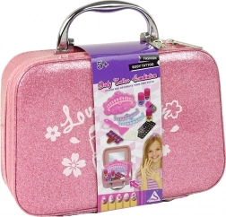 Ta prikupen kozmetični kovček je zasnovan za udobje in zabavo. Stabilno postavitev zagotavljajo štiri nogice na spodnji strani, zadrga olajša odpiranje, trden ročaj pa omogoča, da komplet vzamete kamorkoli. V notranjosti je ogledalo, tako da lahko male navdušenke takoj občudujejo končane nohtne kreacije.