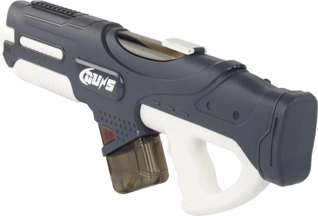 Polnjenje je izjemno enostavno: lahko potopite cev v vodo ali uporabite zgornjo polnilno odprtino. Pištola se napaja z 7,4 V baterijo (del paketa) in priložen je originalni polnilnik za hitro polnjenje. Kakovostna plastika zagotavlja odpornost in dolgo življenjsko dobo.