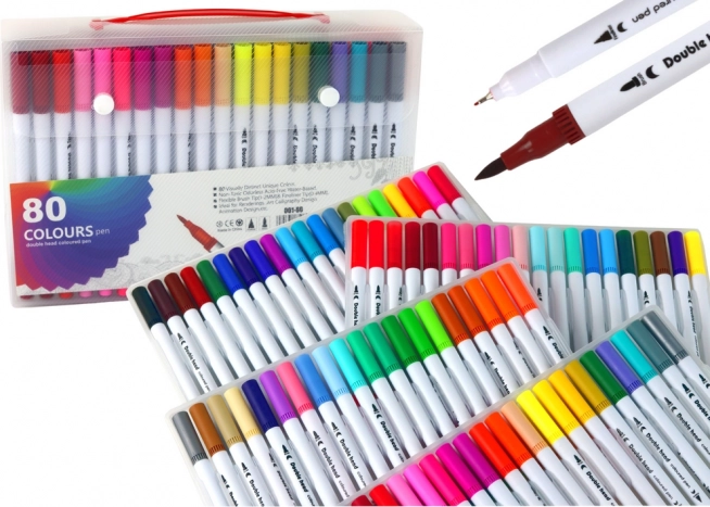 Odkrijte neomejene umetniške možnosti z našimi dvostranskimi flomastri. Set vključuje 80 raznobarvnih flomastrov, ki omogočajo, da izrazite svojo ustvarjalnost v najbarvitejših odtenkih. Ne glede na to, ali ste profesionalni umetnik ali začetniški navdušenec, bodo naši flomastri izpolnili vaša pričakovanja glede kakovosti in raznolikosti.