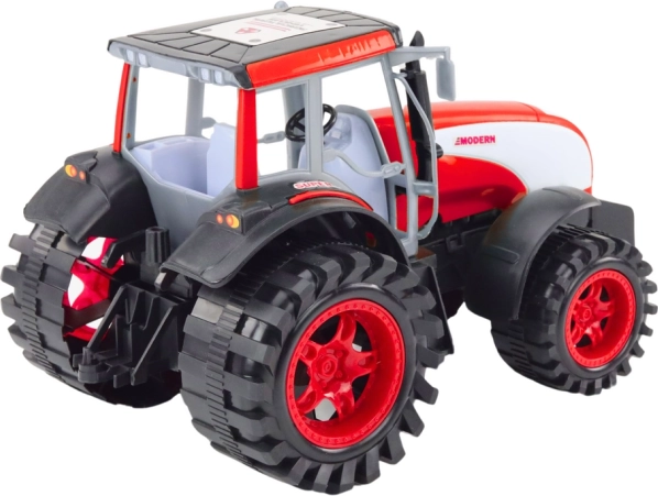 Podrobna kabina, masivna kolesa in kontrastna rdeča barva zagotavljajo avtentičen videz pravega traktorja.