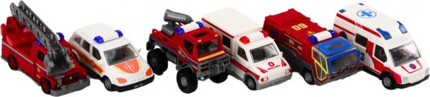 Set vsebuje mešanico gasilskih vozil, reševalnega vozila in policijskih avtomobilov, ki spodbujajo domišljijo in raznolike igralne scenarije.