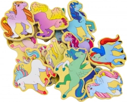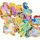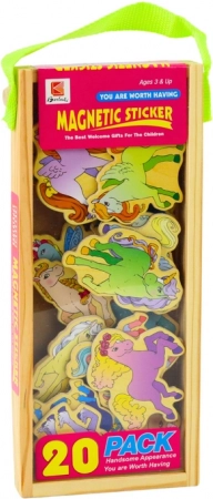 Set vsebuje 20 barvitih magnetov s samorogi, ki jih lahko otroci uporabljajo na hladilniku ali magnetni tabli za ustvarjanje lastnih čarobnih scenarijev. Ta interaktivna oblika zabave razvija kreativnost ter hkrati ročne in zaznavne spretnosti otroka, saj manipulacija z magneti zahteva natančnost in koordinacijske sposobnosti.