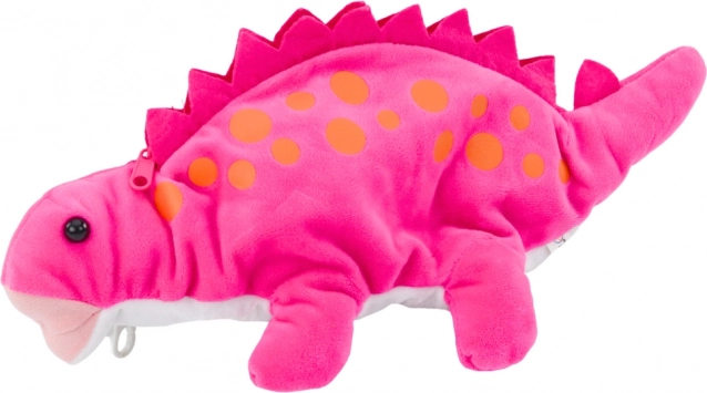 Ta plišasti dinozaver v rožnati barvi navduši otroke z mehkim materialom, hkrati pa preseneti s pametno funkcijo shranjevalnega prostora. Na hrbtu ima kakovostno zadrgo, zato lahko služi kot peresnica, žepek za drobnarije ali mini torbica za skrivne zaklade.