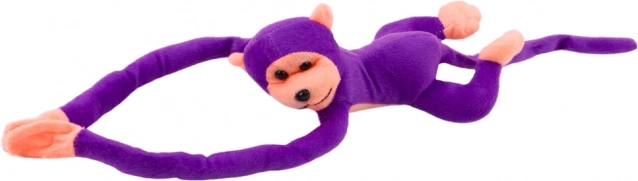 Prisrčna plišasta opica v intenzivno vijolični barvi bo razveselila otroke in odrasle. Ima zelo dolge okončine z ježki, zato jo zlahka obesite na roko, posteljico ali stol. Ob pritisku na trebušček odda zvok, kar spodbuja igro in domišljijo. Mehak material vabi k crkljanju in polepša vsak otroški kotiček.