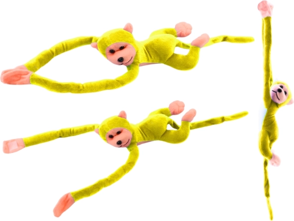 Ta velika rumena plišasta opica prinaša veliko veselja in udobja. Zahvaljujoč nežnemu, žametno mehkemu materialu je idealna za cartanje, njen igriv videz pa pričara nasmeh v vsaki situaciji. Ježki na dlaneh omogočajo, da opico z lahkoto obesite na posteljico, ročaj vozička ali jo pustite, da »objame« otroka.