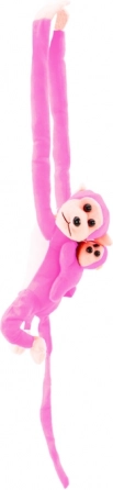 Ljubka rožnata plišasta opica z mladičkom dolžine 70 cm je mehak prijatelj za otroke. Zahvaljujoč dolgim okončinam z pritrjevanjem na ježka jo zlahka obesite na posteljico ali nahrbtnik. Mehak material, udobno crkljanje in certifikata CE in EN71 jo naredijo za varno in zabavno igračo za otroke od 3 let.
