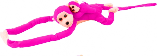 Opička v živo rožnati barvi z mladičkom na hrbtu je ne le vizualno privlačna, temveč tudi odličen dodatek za otroško sobo ali kot darilo.