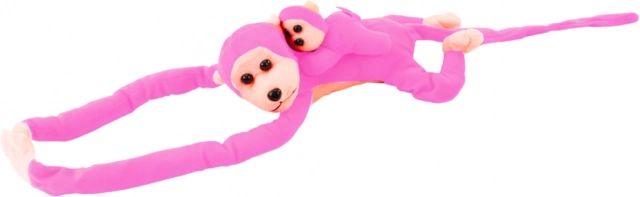 Plišasta opica z mladičkom ni samo igrača, ampak tudi zvest prijatelj za vse življenje. Njena mehkoba in ljubek videz izvabljata nasmeh na obraz vsakomur, ki jo objame. Zahvaljujoč trakom na ježka je mogoče opice združevati ali pritrjevati na roke.