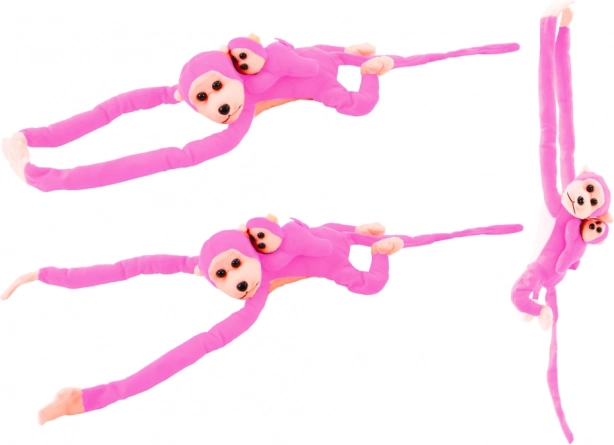 Opica in njen mladiček v roza barvah sta idealna za igro in ustvarjanje zgodb, ki razvijajo otroško domišljijo.