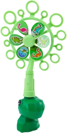 Dizajn z dinozavrovim rezervoarjem in podstavkom z želvico vabi k igri, hkrati pa je upravljanje preprosto in intuitivno. Igra z mehurčki podpira razvoj domišljije, koordinacijo oko–roka ter bivanje na svežem zraku.