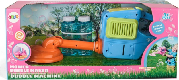Upravljanje kosilnice je zelo preprosto, kar otrokom omogoča samostojno igro. Namestitev mehurčkaste raztopine je intuitivna – dovolj je, da cevko za dovod vstavite v posodico z raztopino. Po pritisku na gumb kosilnica začne izpihovati barvite mehurčke, kar prinaša veliko zabave.