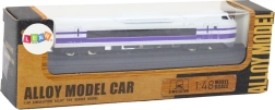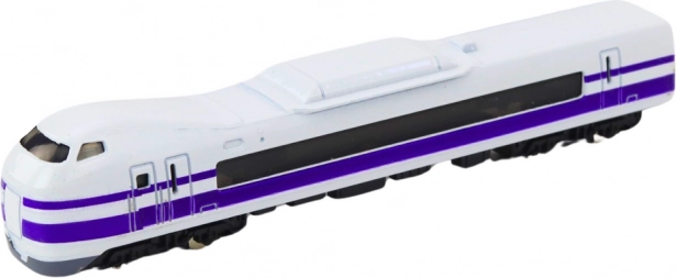 Ta natančno izdelan kovinski model vlaka v merilu 1:48 izstopa po vzdržljivosti in realističnem videzu. Elegantna belo‑vijolična izvedba in skrbno izdelani detajli, kot so okna in vrata, ga naredijo privlačen kos za zbiratelje in male ljubitelje železnic.