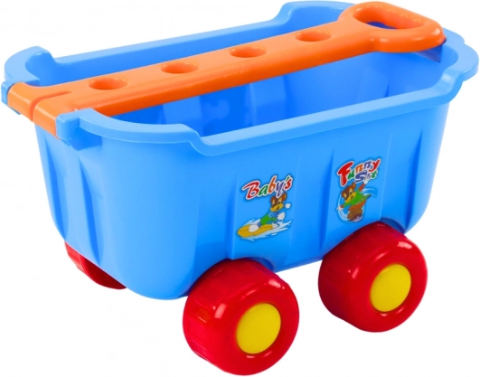 Komplet igrač za pesek je odlična izbira za vsakega otroka, ki rad preživlja čas na prostem in se igra v pesku. Glavni del kompleta je moder voziček na kolesih, ki omogoča enostavno prenašanje igrač, tudi po neravnem terenu, kot sta plaža ali otroško igrišče. Voziček je zasnovan z mislijo na udobje otrok in je opremljen z udobnim ročajem.