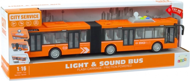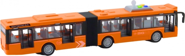 Odkrijte podrobno izdelan mestni avtobus z zgibom, ki zvesto posnema pravi promet. Vgrajeni svetlobni in zvočni učinki poudarijo vzdušje vožnje, medtem ko frikcijski pogon zagotavlja gladko gibanje brez potrebe po baterijah za sam pogon. Zahvaljujoč odpirajočim se vratom lahko otroci ustvarjajo lastne zgodbe in scenarije, od vstopanja potnikov do postankov na željo.