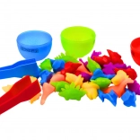Del paketa so otroške kleščice, s katerimi otroci varno vadijo prijem, natančnost in potrpežljivost – veščine, pomembne za pisanje in vsakodnevno samostojnost. Komplet je idealen za samostojno ali skupno igro s starši ali sorojenci ter ponuja preproste matematične aktivnosti, kot sta štetje in ujemanje.