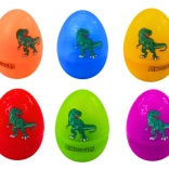 Vsako jajčko skriva majhnega dinozavra. Otroci ujemajo figurice z barvo jajčka, vadijo prepoznavanje barv in razvijajo logično mišljenje na zabaven način.
