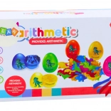 Ta izobraževalni komplet prinaša otrokom veselje do odkrivanja: v vsakem barvnem jajčku se skriva majhen dinozaver, ki ga otroci ujemajo in razvrščajo po barvi. Med igro vadijo prepoznavanje barv, logično mišljenje in koordinacijo oko–roka, hkrati pa pridobivajo samozavest pri natančnem rokovanju z drobnimi predmeti.