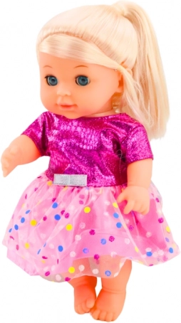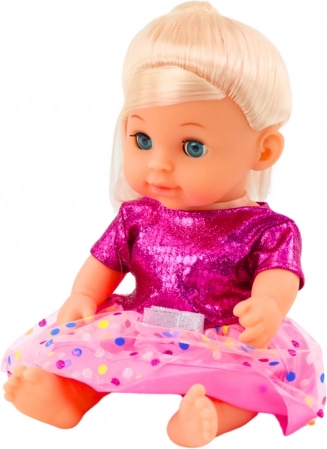 Ta očarljiva punčka z blond lasmi in modrimi očmi je idealna za posnemanje skrbi za dojenčka. Zahvaljujoč premičnim rokam, nogam in glavi jo lahko zlahka posedete ali položite, realistična funkcija lulanja po pitju iz stekleničke pa igri doda pristnost.