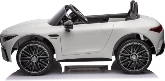 Avtomobilček zvesto sledi linijam in podrobnostim modela MERCEDES AMG SL63 – od športne maske do izrazitih luči in platišč. Otroci bodo uživali v pristnem videzu pravega vozila.
