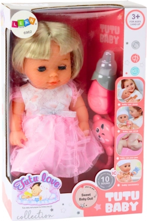 Na trebuhu lutke je zvočnik, ki po pritisku gumba oddaja različne zvoke, ki lahko posnemajo različna čustva in obnašanje dojenčka. To stimulira otroško domišljijo in pomaga pri razvoju slušnih in kognitivnih veščin.