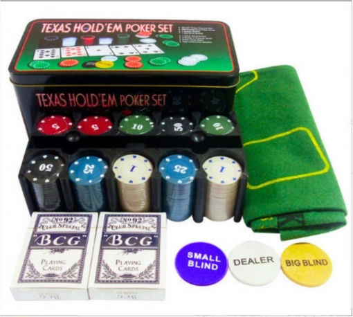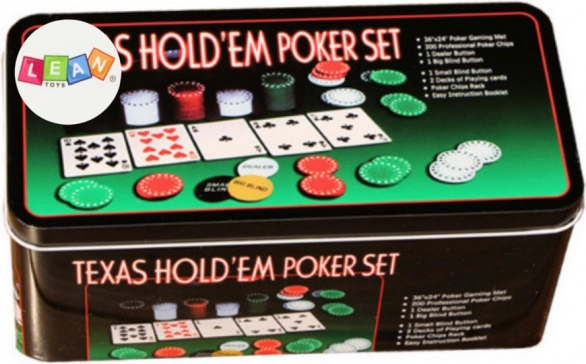 Celovit poker set za domače turnirje in zabavo s prijatelji. Vsebuje 2 kompleta kakovostnih kart, barvne žetone z različnimi vrednostmi in praktično igralno podlogo za pregledno in profesionalno igro. Certifikacija CE, skladnost z EN71, primerno za otroke od 6 let.