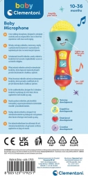 Interaktivni mikrofon CLEMENTONI BABY je zasnovan tako, da otrokom od najzgodnejših let približa svet glasbe. Zaradi svetlobnih učinkov, zvokov in ojačanja glasu otroke motivira k petju, govorjenju in ritmiziranju ter tako naravno podpira njihovo samopodobo in komunikacijske veščine.