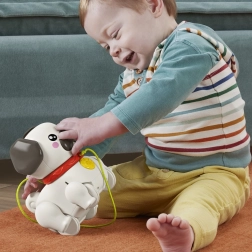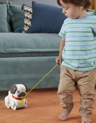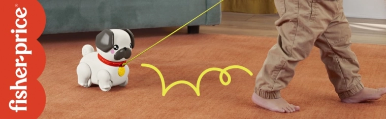 Spoznajte vlečnega mopsa, ki vsak otrokov korak spremeni v zabavno pustolovščino. Dovolj je vzeti povodec v roko in kužek se »sprehodi« – ušeska in tačke se ritmično gibajo, zasliši se prijazno lajež. Idealna igrača za otroke od 12 mesecev, ki odkrivajo hojo in svet okoli sebe.