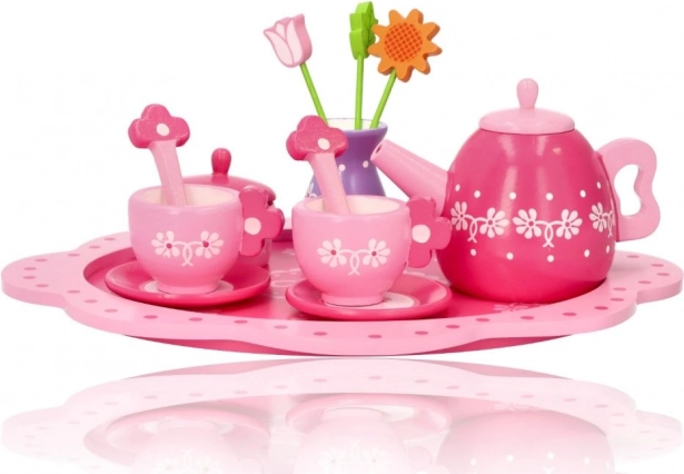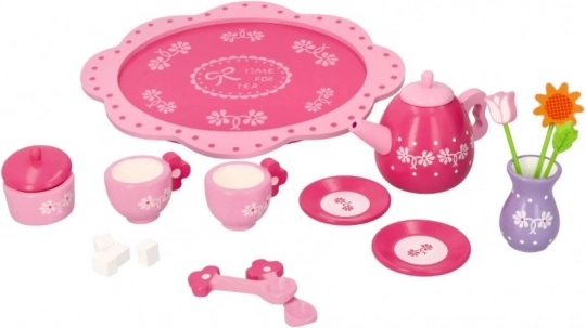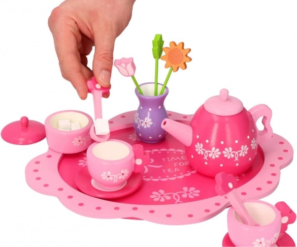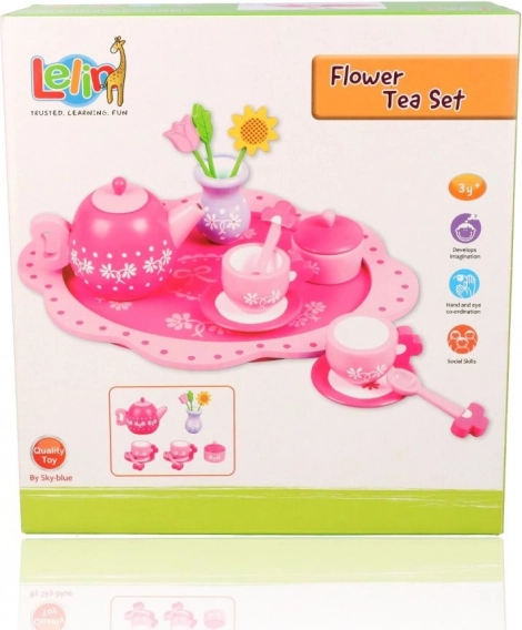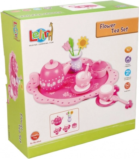 Ta očarljiv leseni čajni set v nežnih rožnatih tonih in s cvetličnimi detajli je idealen za otroške čajne zabave. Zahvaljujoč trpežnemu lesu odlično prenaša vsakodnevno igro in hkrati razvija pomembne veščine.
